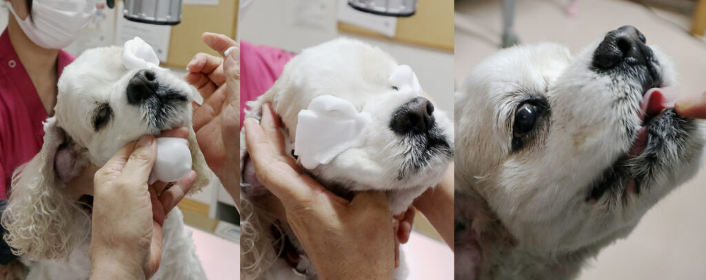 当センターでは、眼科処置の際に使用することが多く、眼の汚れが気になるワンちゃんネコちゃんの日常のお手入れにも積極的に使用をお勧めしています。