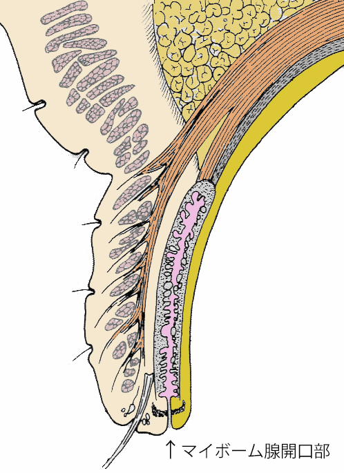 眼瞼縁にはマイボーム腺の開口部が存在し、上下眼瞼それぞれに約20〜40個程度とされています。つまり、両眼瞼を合わせると片眼につき40〜80個程度の開口部が存在することになります。